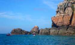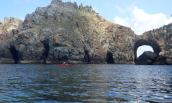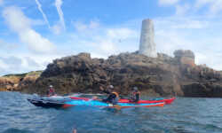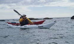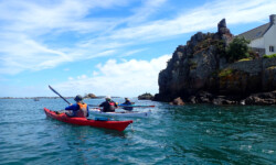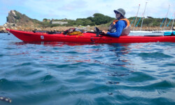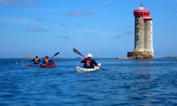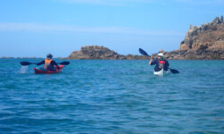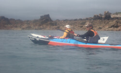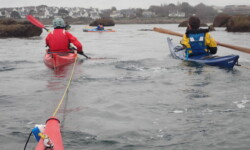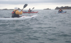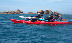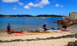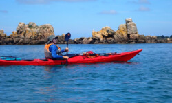 Le dimanche ( sous un ciel gris ) nous avons mis les kayaks à l’eau pas très loin du camping. Au programme, le tour complet de Bréhat par l’ouest. Le petit coefficient nous a permis de naviguer sans subir de gros courants, vagues hachées du côté du phare du Paon et calme plat par la suite. A 14h environ la boucle était faite. Nous étions à de retour à Concarneau en fin d’après-midi.